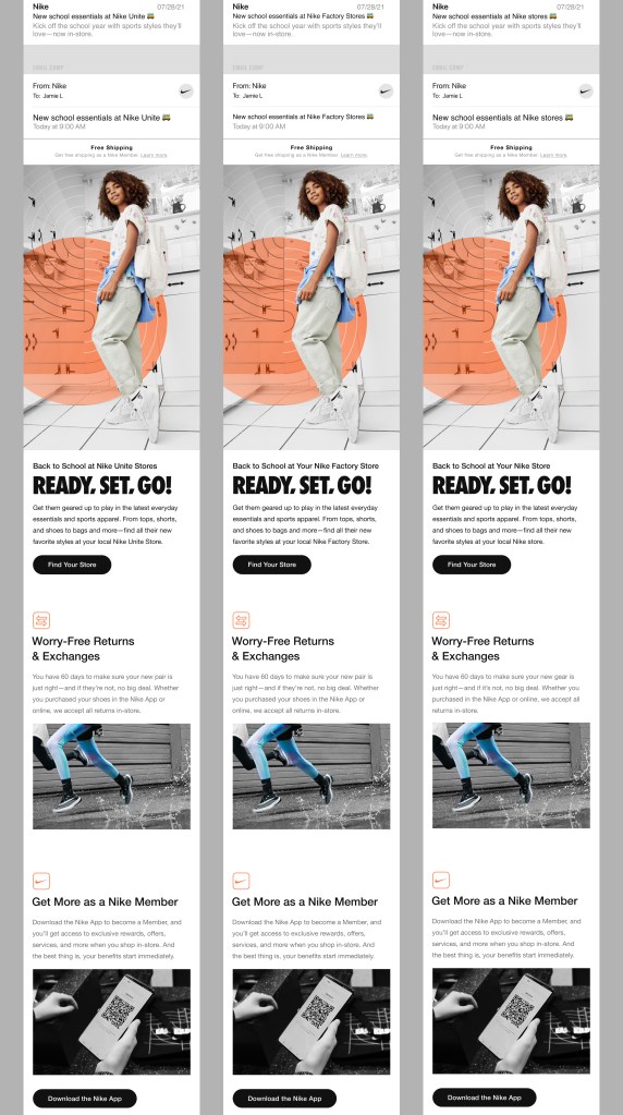 These weekly emails require short and punchy copy. I also had to confirm shoe names and assets were correct. (Nike has a lot of shoes.)